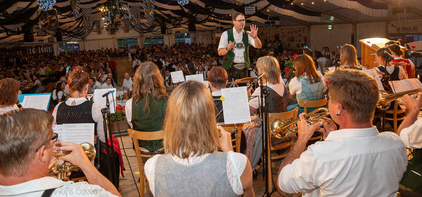 Auch die Blasmusik hinterließ einen bleibenden Eindruck. Es trafen zwei Spitzenensembles aufeinander: Guido Henn & seine Goldene Blasmusik sowie die tschechische Blaskapelle Drietomanka. Während Guido Henn besonders das Holzregister eindrucksvoll zur Geltung brachte und mit einem fulminanten Klarinettensolo glänzte, begeisterten die Brüder Jan und Jaroslav Mudry von Drietomanka auf Trompete und Tenorhorn. Eine besondere Note erhielt der Auftritt durch „Prava Laska“ – ein Stück, das Jaroslav eigens für seinen Heiratsantrag komponiert hatte. Der Titel bedeutet „wahre Liebe“ – und seit jenem Antrag ist er mit der Sängerin der Gruppe glücklich verheiratet. Ein weiterer Höhepunkt war der Besuch des damaligen bayerischen Ministerpräsidenten Horst Seehofer, der unter der Woche zu einer politischen Veranstaltung ins Festzelt kam. Der emotional wohl bedeutendste Moment des Jubiläumsfestes war jedoch die Stabübergabe des langjährigen Dirigenten Christian Dengler an seinen Nachfolger Thomas